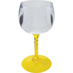 12 oz. Plastic Stemmed Goblet with your choice of 8 standard stem colors. USA made of durable NAS Acrylic Plastic and perfect for indoor and outdoor use. Prices include a one stock color, one location imprint. Multi-color imprint, 2nd side imprint and full color process imprinting are available. Top rack dishwasher safe, BPA free and recyclable. Also available in stemless, novelty stem and light-up styles. Other styles of heavy plastic drinkware in most any size and shape are also available. Dishwasher safe.